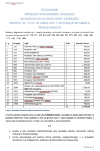 szczegółowo wskazanych i opisanych w regulaminie przetargu dostępnym na stronie www.krsa.pl, gdzie dostępny jest również wykaz cen wywoławczych poszczególnych ruchomości. Przetarg w dniu 04.112025 r. o godzinie 14:30 w Kancelarii Restrukturyzacyjnej przy ul. Fabrycznej 6 we Wrocławiu. Wadium w kwocie po 5.000,00 na każdą z pozycji z wyjątkiem pozycji 22 i 23, gdzie wadium wynosi 50.000,00 zł. Rachunek: 06 1930 1190 2220 0274 6320 0001. Oferty należy składać do 3 listopada 2025 r. lub osobiście na minimum 1 godzinę przed rozpoczęciem przetargu.