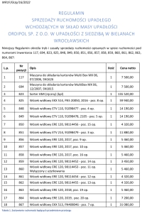 szczegółowo wskazanych i opisanych w regulaminie przetargu dostępnym na stronie www.krsa.pl, gdzie dostępny jest również wykaz cen wywoławczych poszczególnych ruchomości. Przetarg w dniu 13 stycznia 2026 roku o godzinie 15:45 w Kancelarii Restrukturyzacyjnej przy ul. Fabrycznej 6 we Wrocławiu. Wadium w kwocie po 3.000,00 na każdą z pozycji z wyjątkiem pozycji 3 gdzie wadium wynosi 40.000,00 zł. Rachunek: 06 1930 1190 2220 0274 6320 0001. Oferty należy składać do 12 stycznia 2026 r. lub osobiście na minimum 1 godzinę przed rozpoczęciem przetargu.