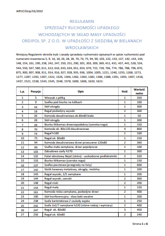 Pakiet 177 sztuk mebli za cenę nie niższą niż 6.000 zł netto.