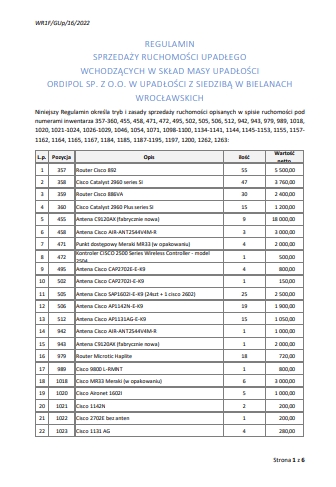 Pakiet 550 sztuk urządzeń sieciowych za cenę nie niższą niż 6.000 zł netto.