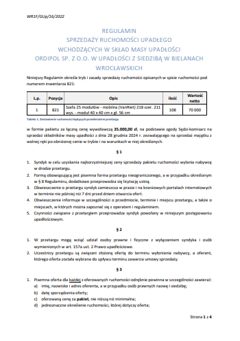 Pakiet 108 sztuk szaf modułowych za cenę nie niższą niż 35.000 zł netto.